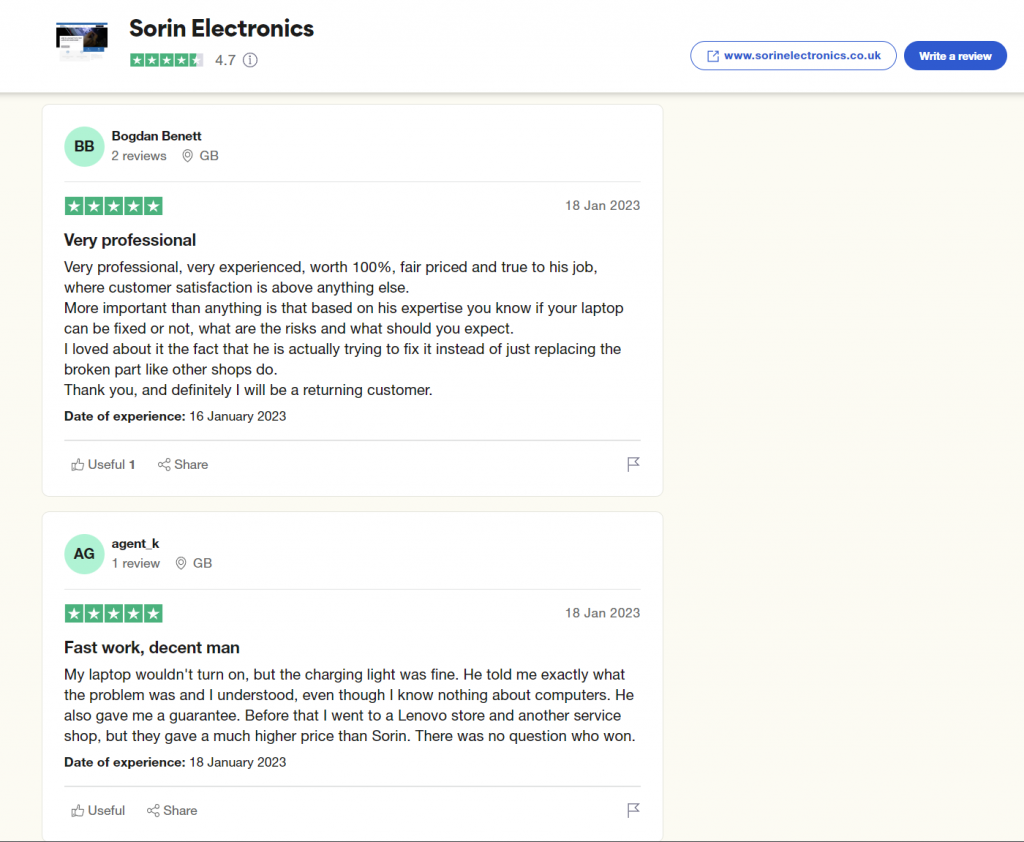 At Sorin Electronics, we take pride in our commitment to providing exceptional service and quality repairs. Our customers’ satisfaction is our top priority and we are proud to share some of their experiences.